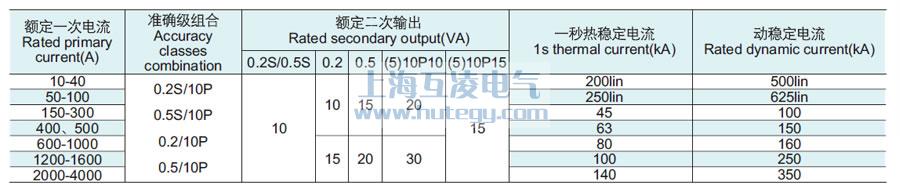 | 型號 | 額定一次電流(A) | 準 確 級 | 額定輸出(VA) | 短時熱電流(Ith)(kA) | 額定動穩(wěn)定電流(Idyn)( kA) | ||||